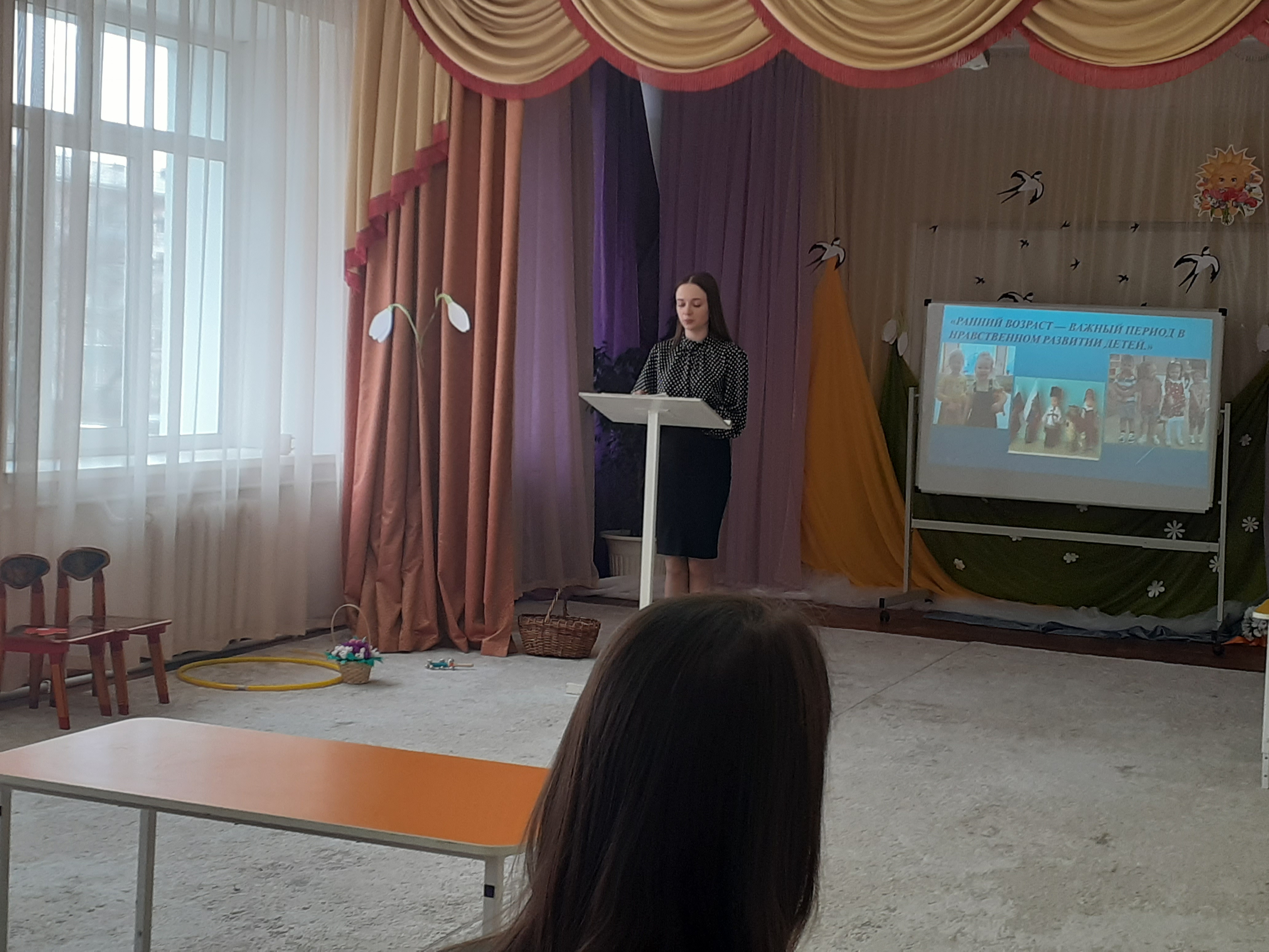 Далее педагоги презентовали свой опыт работы: Баркова О.Б. рассказала об особенности организации РППС в группе детей раннего возраста», Гурова А.С., педагог-психолог рассказал о взаимодействии педагогов и родителей для успешной адаптации и ранней социализации детей раннего дошкольного возраста. Ревутская М.М. рассказала о роли малых фольклорных форм в развитие нравственно-патриотических чувств у детей раннего дошкольного возраста.