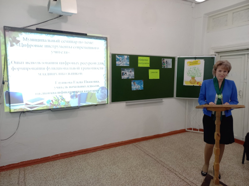 Открыла районный методический семинар и.о. директора школы, зам. директора по УВР Кочергина И.Г. Ирина Геннадьевна обратилась к участникам семинара с приветственным словом, в котором отметила, что тема методического семинара актуальна, так как повышение качества образования является одной из основных задач российского образования. Задача актуальна для МКОУ СОШ №17 как участника проекта «500+». В своём сообщении «Опыт использования цифровых инструментов в целях повышения качества образования» Ирина Геннадьевна обобщила опыт работы по данному направлению.