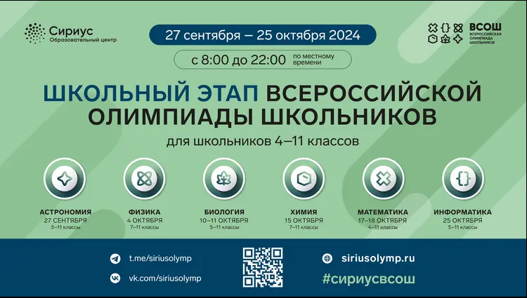 Ежегодно под эгидой Министерства Просвещения РФ проходит Всероссийская олимпиада школьников, участниками которой являются все общеобразовательные учреждения России. Основными целями и задачами Олимпиады являются выявление и развитие у обучающихся творческих способностей и интереса к научно- исследовательской деятельности, создание необходимых условий для поддержки одаренных детей, выявление наиболее талантливых обучающихся. В Олимпиаде принимают участие на добровольной основе обучающиеся государственных, муниципальных и негосударственных образовательных организаций, реализующих основные общеобразовательные программы основного общего и среднего общего образования. Олимпиада проводится в четыре этапа: школьный, муниципальный, региональный и заключительный.