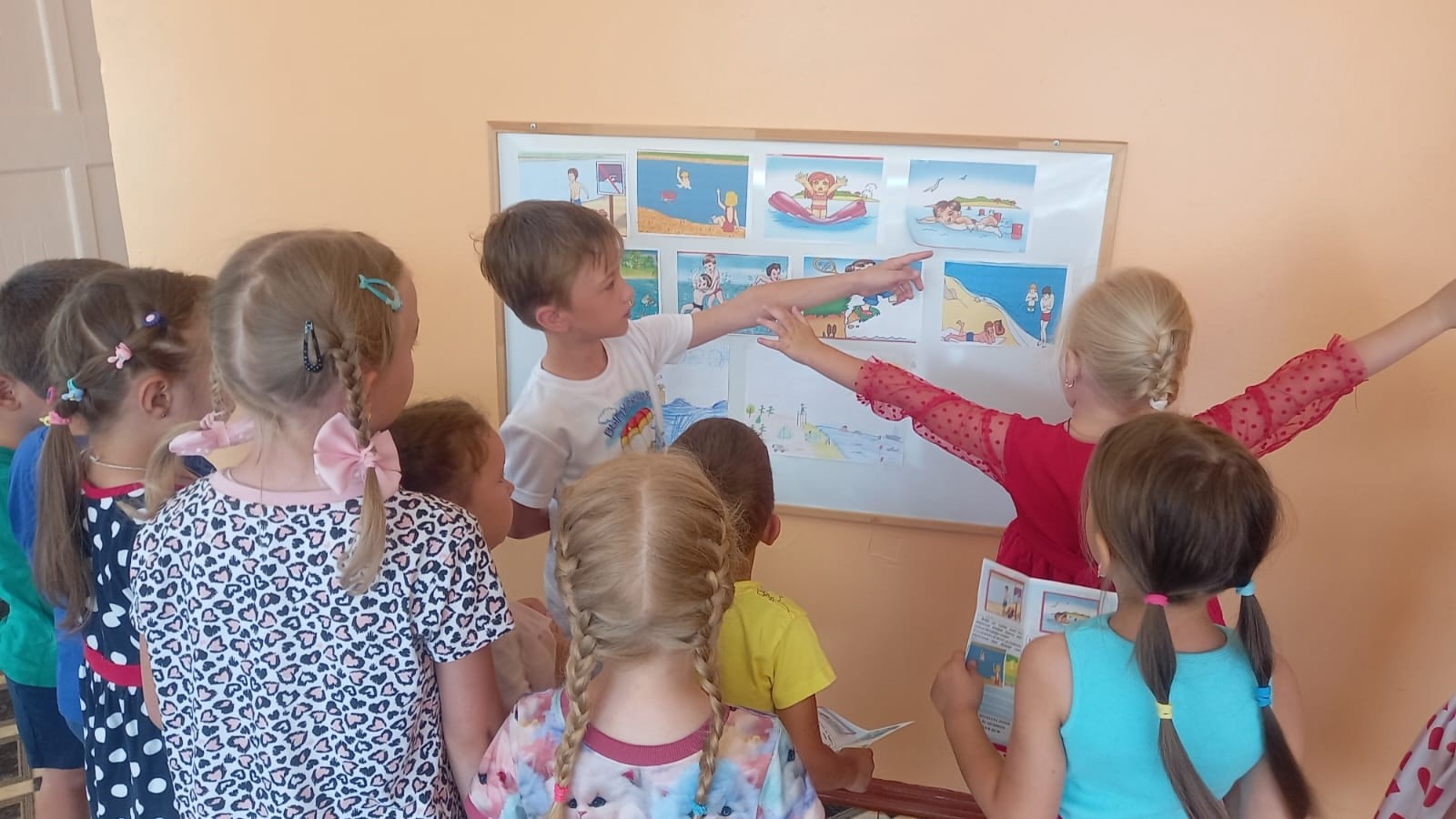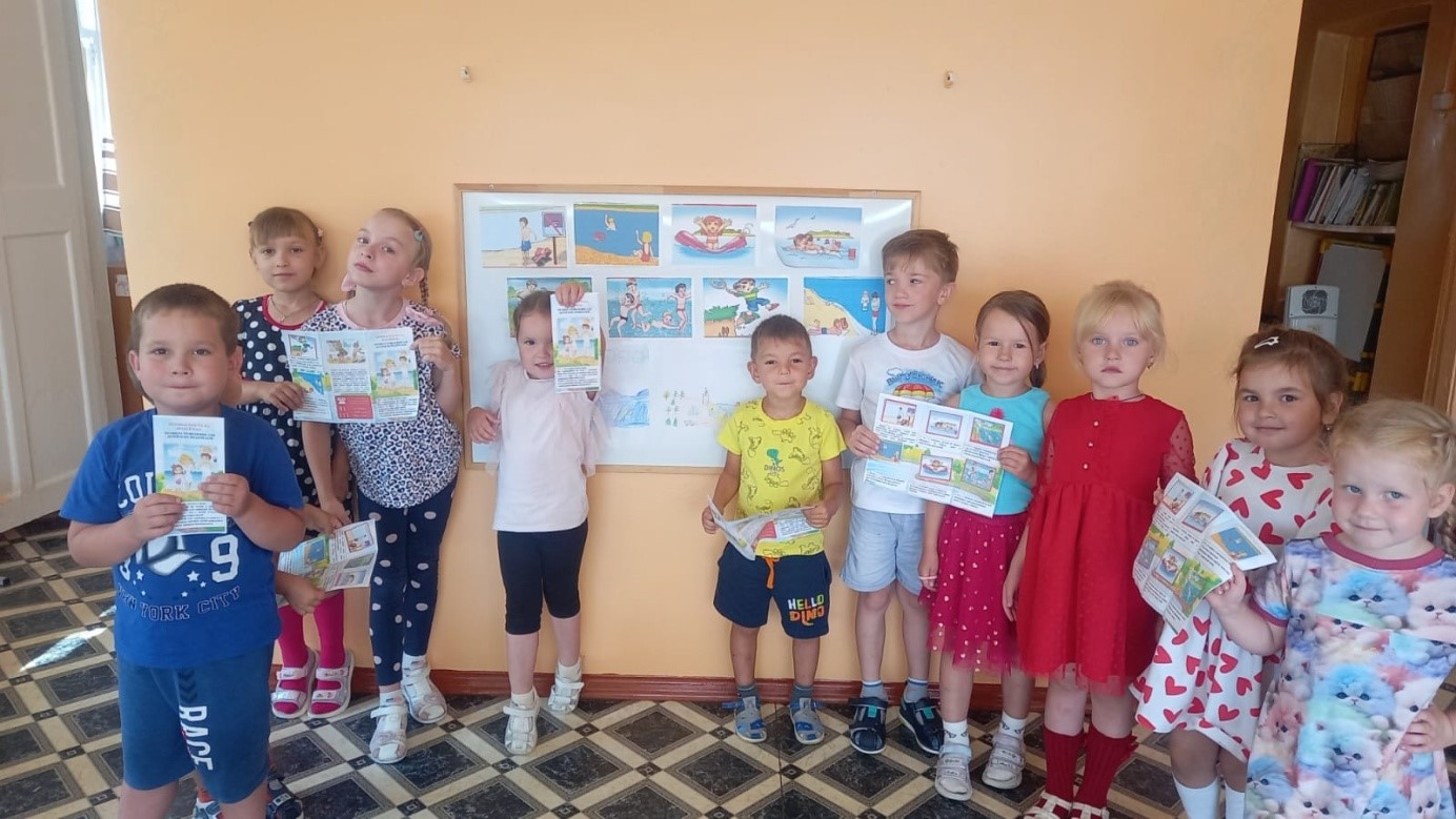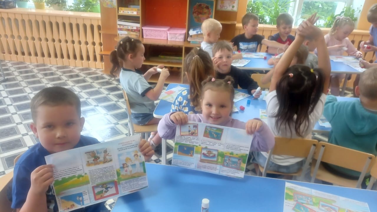 Воспитатель Корелова Е.В. вместе с детьми обсудили правила безопасного поведения у воды, рассмотрели наглядные материалы и провели игровые занятия, направленные на развитие ответственности и внимательности. Итогом акции стало изготовление воспитанниками буклета «Безопасность на водоемах»: дети вырезали картинки и наклеивали их в буклеты с написанным текстом. Свои буклеты они раздали не только своим родителям, но и родителям из других групп детского сада.