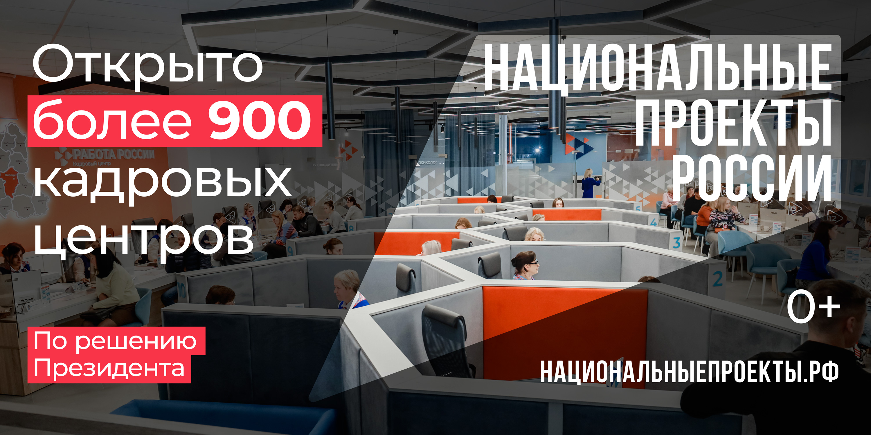 Так, по национальному проекту «Кадры» продолжается модернизация центров занятости населения — на их месте открываются современные кадровые центры «Работа России». Сейчас в стране работают уже более 900 кадровых центров.