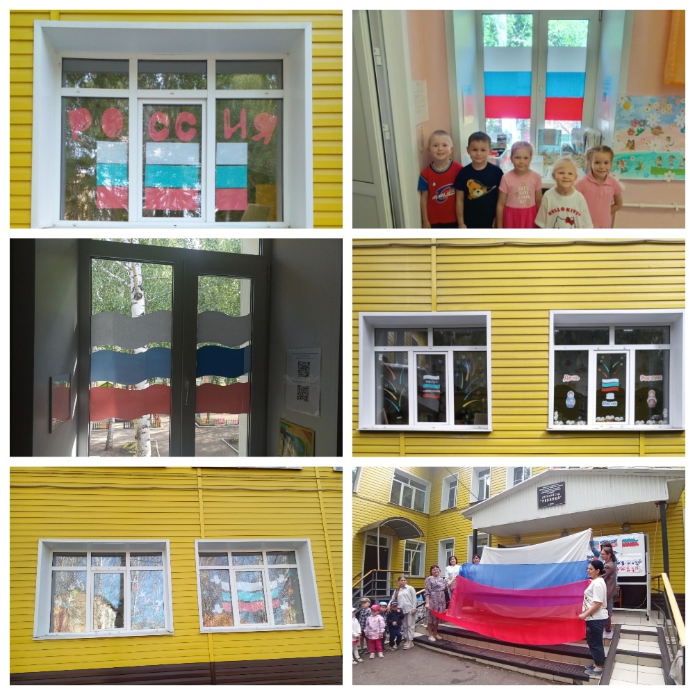 В рамках акции обучающиеся и воспитанники образовательных организаций раскрасили окна рисунками, ассоциирующимися с российским флагом и Россией.