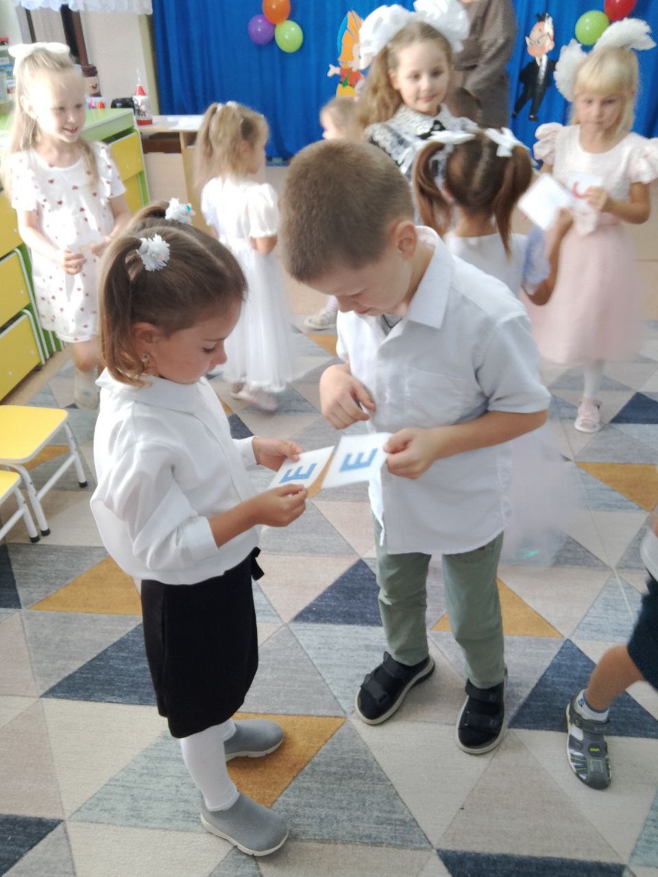Первый день нового учебного года прошел ярко и эмоционально. В гости к ребятам приходил Незнайка. Вместе с ребятами он играл в игры «Отгадай букву», «Найди пару своей букве», «Передай карандаш», дети читали стихи, пели и танцевали.