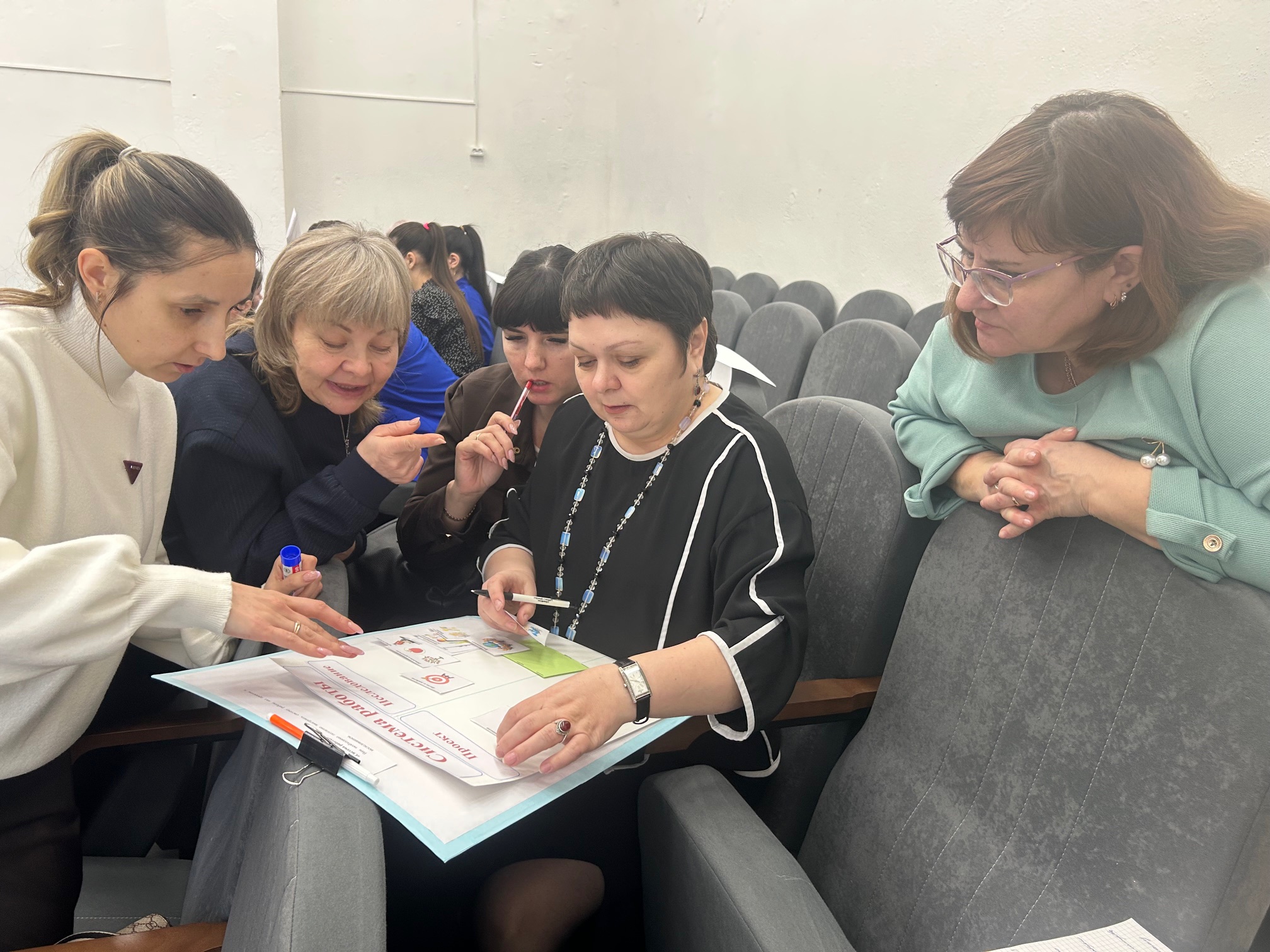 В рамках круглого стола педагоги прошли курс молодого исследователя: учились на практике отличать проект от исследования вместе с Карицкой Е.И. и Ковалевской О.В.; искать идеи через метод «А если…?» с Баженовой Е.Г.; ставить цели, задачи, гипотезы и правильно формулировать проблему с Гусевой Ф.А., Краско Т.М; отличать актуальность от новизны с Диговец Т.В.; получили практические советы, как презентовать исследование от Сулеймановой С.А.