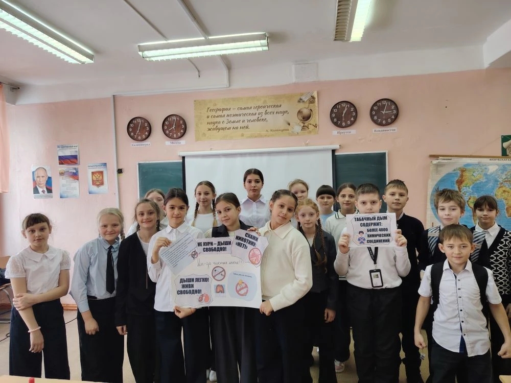 С 17 по 21 ноября 2025 года во всех 34 общеобразовательных организациях Тайшетского муниципального округа была проведена неделя профилактики употребления табачных изделий «Мы – за чистые легкие!», в которой приняли участие 6528 обучающихся, 2832 родителя, 496 педагогов, представители ОГБУЗ «Тайшетская районная больница».