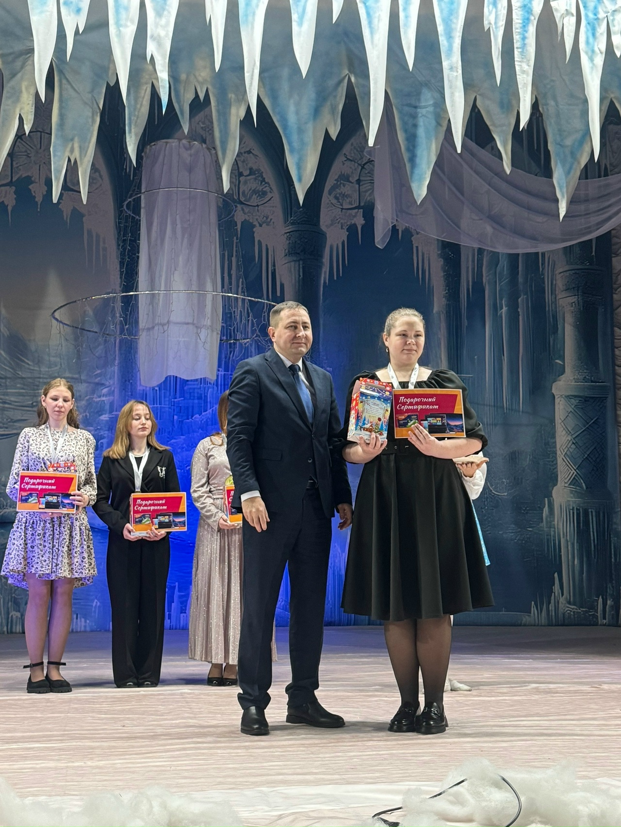 В торжественной обстановке мэр округа Кузин Александр Сергеевич тепло приветствовал ребят, поздравив их с наступающим Новым годом. В своей речи он отметил важность образования и стремление к знаниям, подчеркнув, что именно такие ученики, как они, являются гордостью округа. По традиции мэр вручил учащимся 9, 10 и 11 классов памятные медали за особые успехи в учёбе, что стало для них значимым знаком признания их труда и стараний.