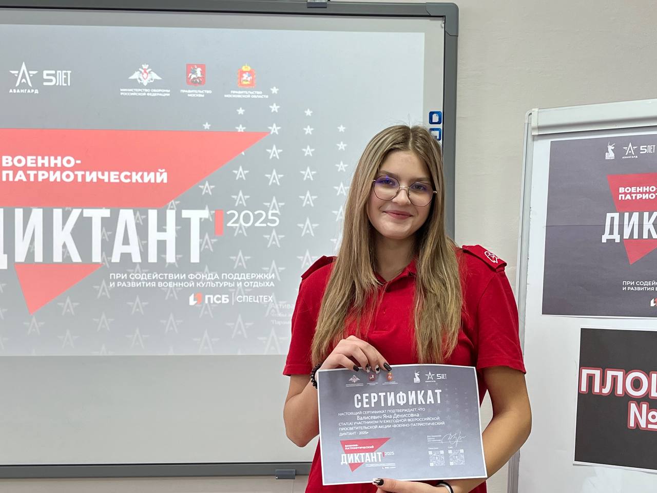 Каждый юнармеец получил сертификат участника акции «ВОЕННО-ПАТРИОТИЧЕСКИЙ ДИКТАНТ - 2025» и в дальнейшем будет участвовать в розыгрыше главного приза — поездки в лагерь «Авангард» Московской области.