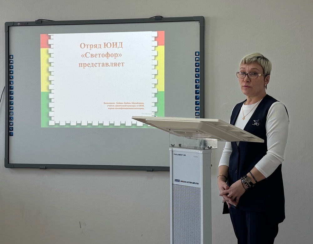 Милана Максимовна Авдеенко, инспектор по пропаганде БДД Госавтоинспекции ОМВД России – акцентировала внимание на роли школьных отрядов ЮИД в профилактике детского дорожно-транспортного травматизма, познакомила со статистикой аварийности в Тайшетском муниципальном округе.