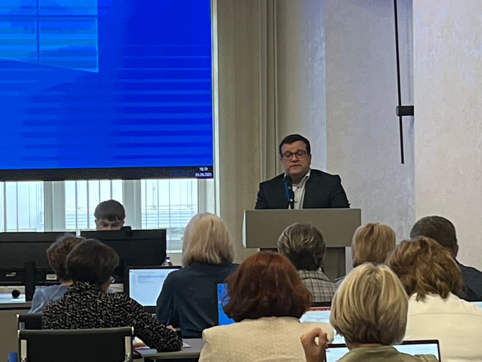 В рамках обучения была организована встреча с министром образования Иркутской области М. А. Парфеновым, в ходе которой были озвучены основные направления развития образования на 2025–2026 учебный год и даны ответы на вопросы руководителей.