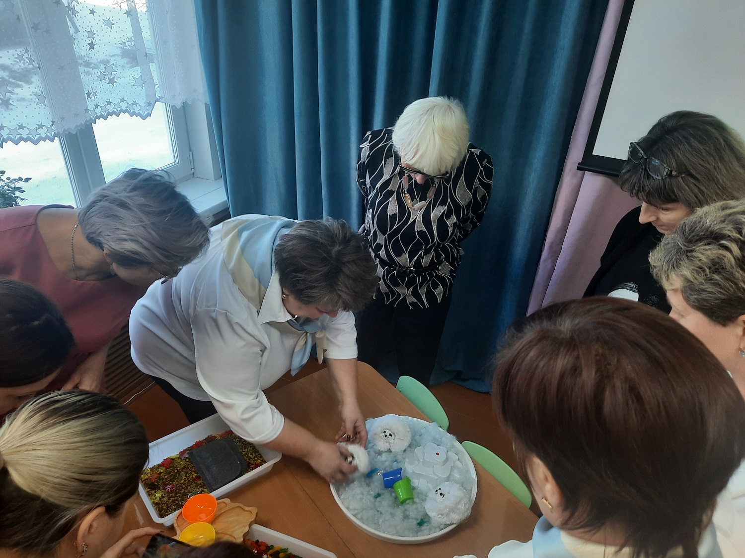 В рамках проведения мастер-класса «Использование нетрадиционных техник художественного творчества для реализации вариативной части образовательной программы МКДОУ детского сада присмотра и оздоровления № 15 г. Тайшета» педагогам продемонстрировали нетрадиционные техники художественного творчества. Участники семинара выполнили творческую работу «Пушистый символ Байкала» в техниках «тестопластика» и «паспарту», создав объёмные изображения байкальской нерпы, украсив их декоративными элементами, что позволило продемонстрировать высокое мастерство владения этими художественными техниками и оригинальность подхода к воплощению идеи.