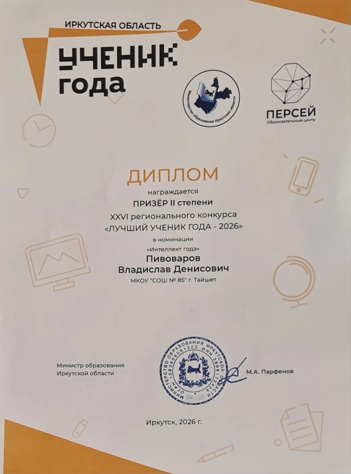 Поздравляем Владислава с достойным выступлением на региональном уровне. Мы желаем ему дальнейших успехов, новых побед и реализации всех намеченных планов!