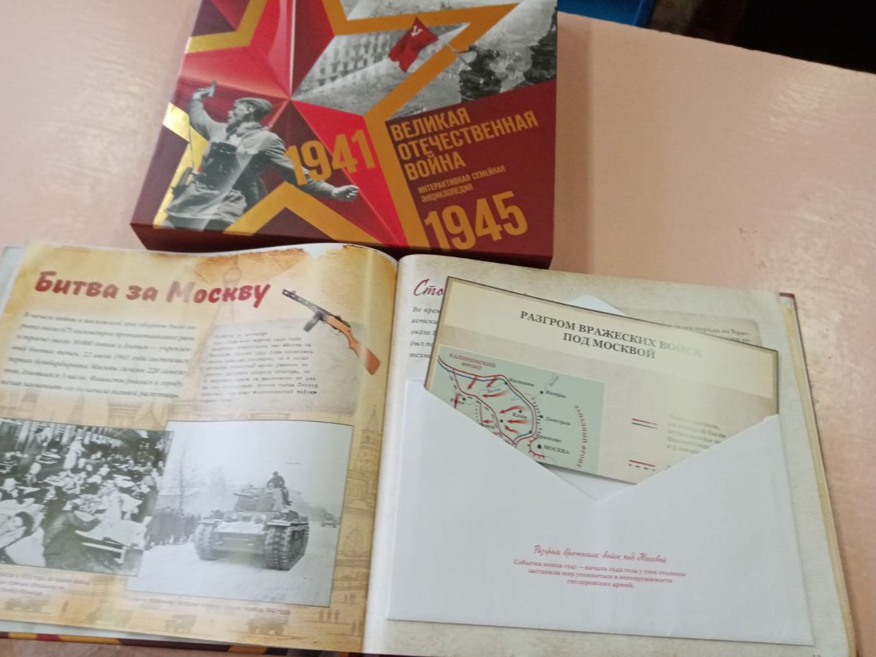 В МКОУ Берёзовской СОШ, в школьном уголке Воинской Славы появилась книга - большая семейная энциклопедия «Великая Отечественная война». Книга наполнена фронтовыми фотографиями и военными картами. Подарила книгу в школьную библиотеку ученица 5 класса Ронжина Анна.