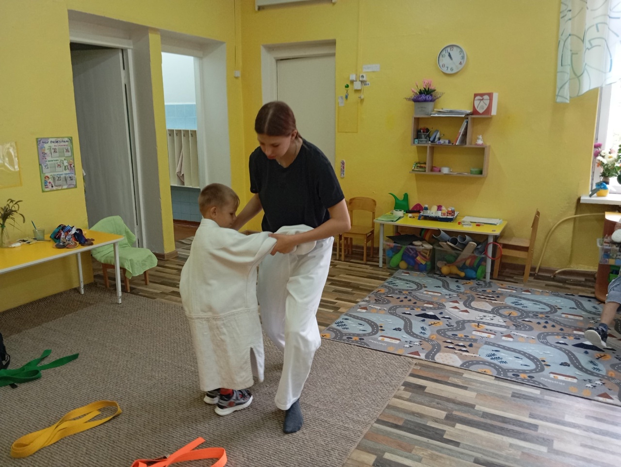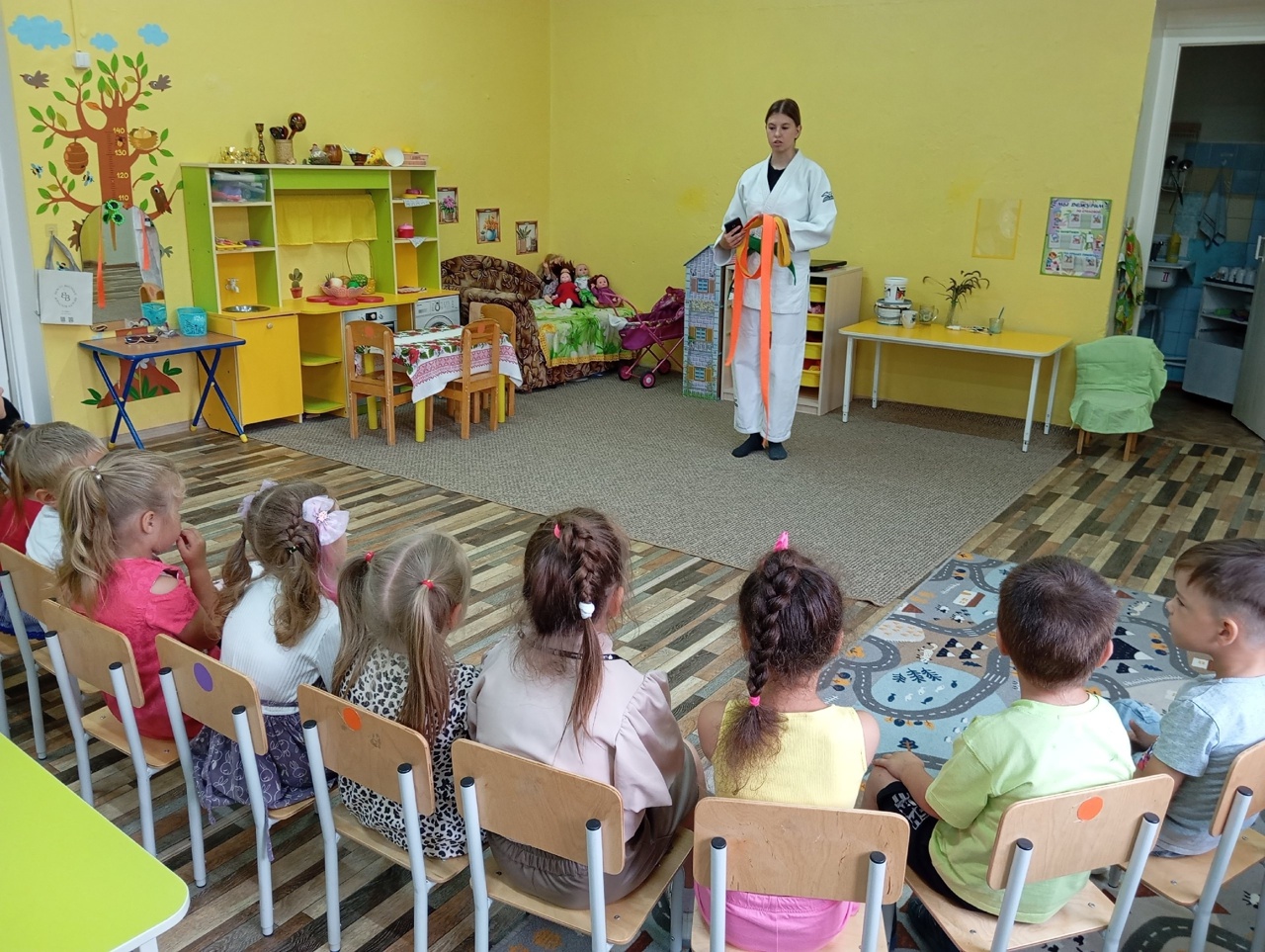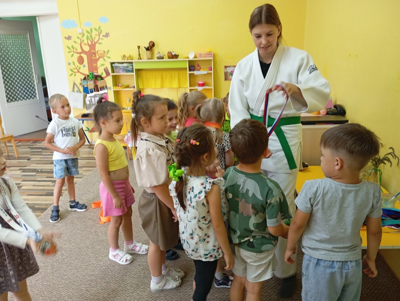 К ребятам старшей группы детского сада «Белочка» приходила юная дзюдоистка Синичук Валерия, выпускница детского сада.