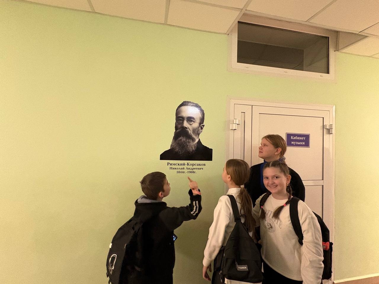 У дверей учебных классов размещены портреты мыслителей и учёных, чьи открытия и творения изменили мир. Это не просто декоративное решение — каждый портрет подобран в соответствии с профилем кабинета:
