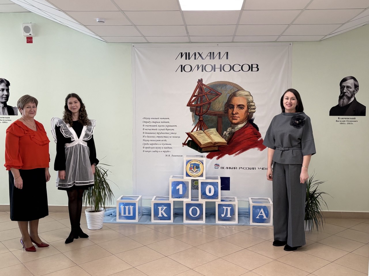 5 февраля в рамках проекта «Лица Героев», инициированного партией «Единая Россия» и Министерством Просвещения РФ состоялось открытие мурала Михаила Васильевича Ломоносова, расположенного в одной из рекреаций школы. Он напоминает о ценности образования, побуждает интересоваться наукой и связывает прошлое и настоящее, показывая, что великие открытия начинаются с усердия и любопытства.
