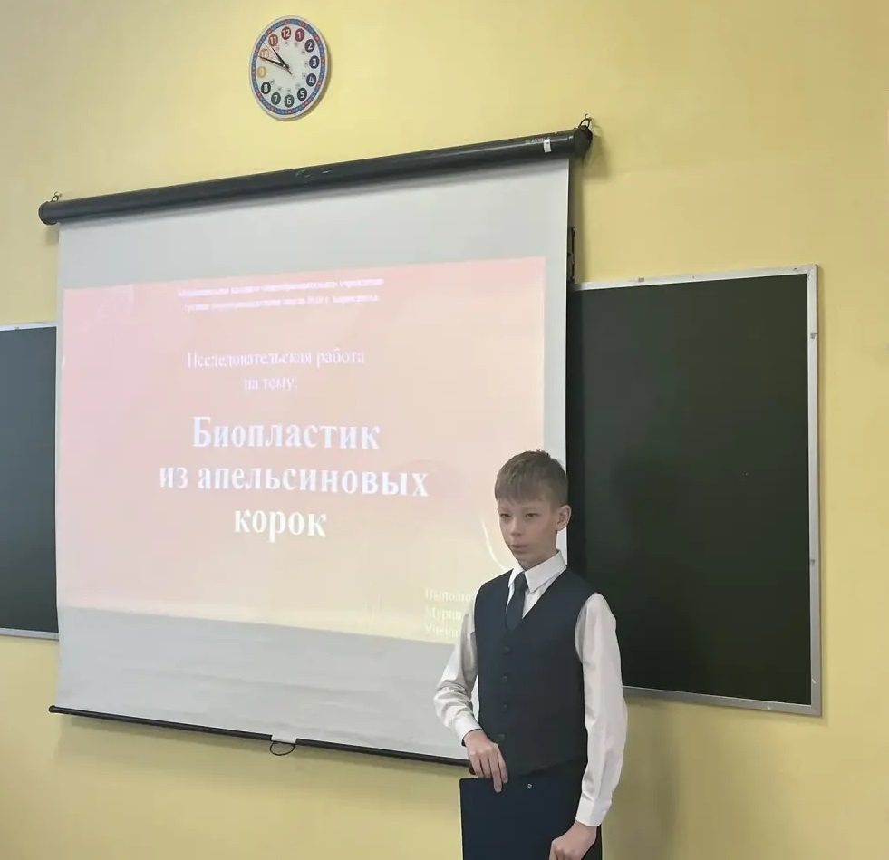 1 место - Мурин Дмитрий, МКОУ СОШ №10 г. Бирюсинска, исследование «Биопластик из апельсиновых корок», руководитель Шершень Надежда Ивановна;