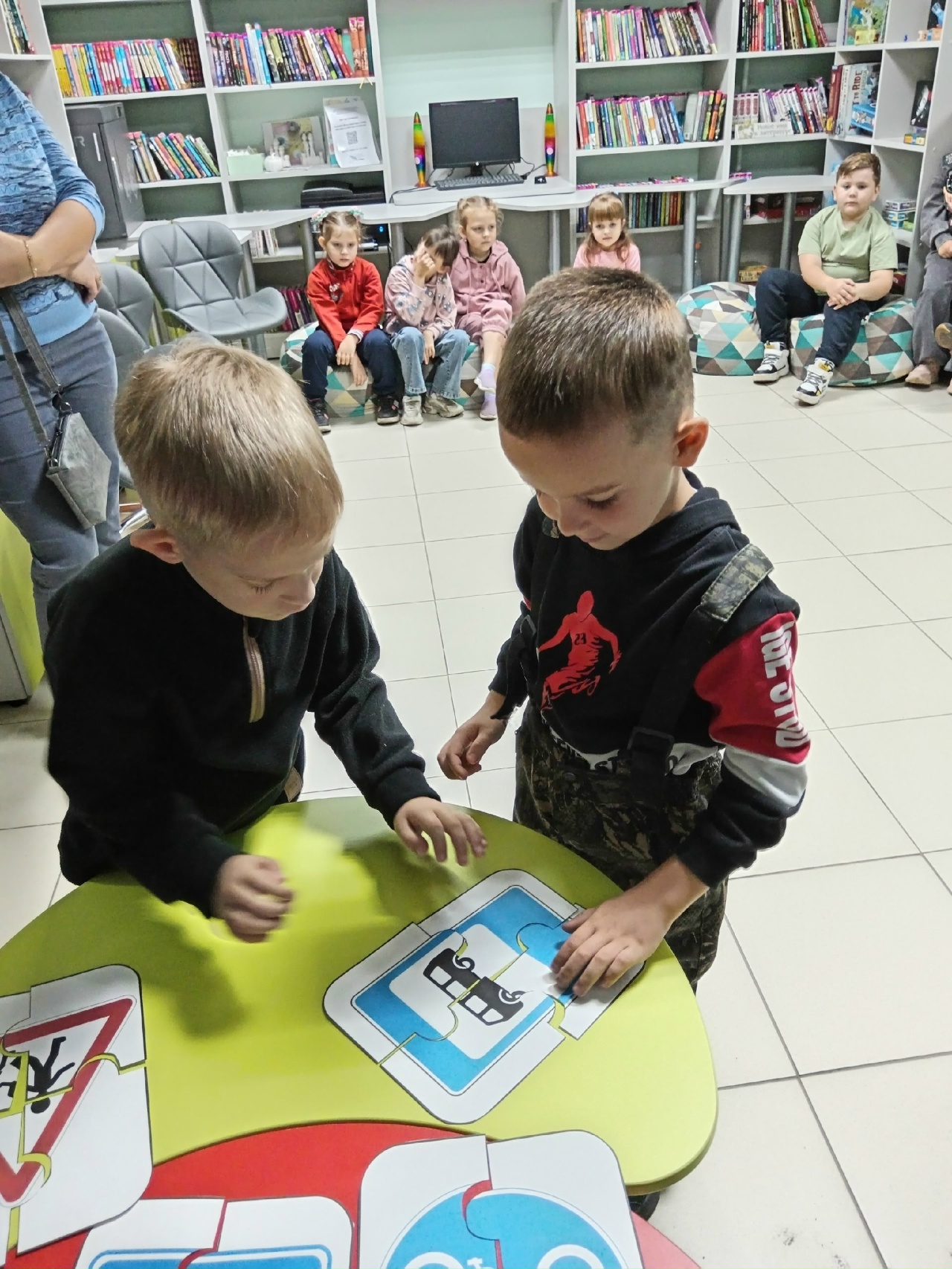 Большое внимание детей привлекла выставка книг, приуроченная единому дню безопасного движения на дорогах города. Ребят познакомили с литературой по безопасности на дорогах города, поиграли в интересные игры. Библиотекарь провела для ребят познавательную викторину, в которой дети принимали непосредственное участие (отгадывали загадки, вспоминали пословицы и поговорки о книгах и пользе чтения, отвечали на вопросы). Дети с удовольствием рассматривали журналы, различные книги, энциклопедии на разные тематики. Такого количества книг ребята еще не видели.