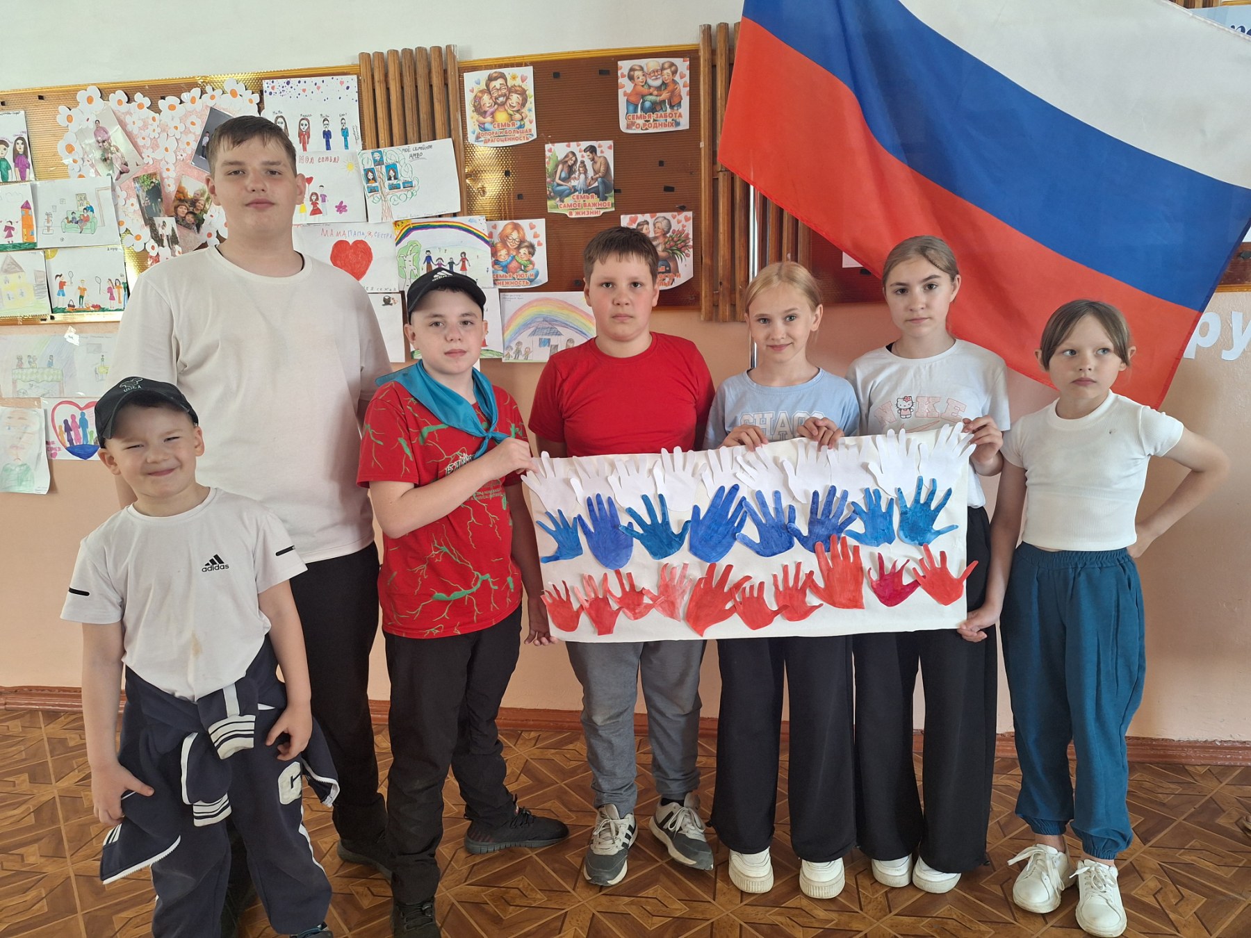 я ребят были организованы беседы, викторины, игровые программы «Знатоки России», «Я живу в России», «Моя Родина- Россия», конкурсы рисунков на асфальте, танцевальные флешмобы «Я гражданин России», легкоатлетический пробег «Вместе мы сила», мини-конкурс «Пословицы о Родине». Обучающиеся присоединись к акциям «Россия в моих руках» и «Окна России 2024», изготавливали поздравительные открытки и раздавали их прохожим.