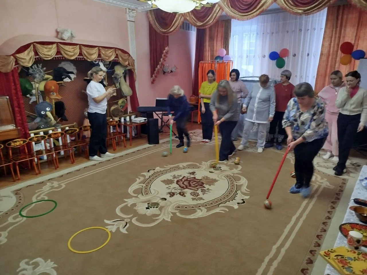 Затем перешли непосредственно к ознакомлению с опытом педагогов детского сада «Сказка» и посетили открытое образовательное мероприятие с детьми старшей группы «Золотой Ключик» по теме: «Создание мини-музея народных промыслов» (Пряникова Ю.Г., музыкальный руководитель; Моськина Н.Г., воспитатель). Данное образовательное событие позволило стажерам «погрузиться» в мир русских народных промыслов, которые отражают традиции разных регионов России и увидеть удивительные экспонаты, украшенные хохломской, дымковской росписью и бело-голубое чудо гжель.