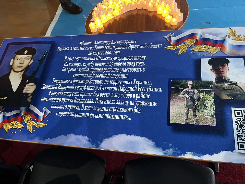 Александр Александрович Забиняко родился в августе 2001 года в многодетной семье в селе Шелаево Тайшетского района Иркутской области. В 2017 году он успешно окончил Шелаевскую среднюю школу, после чего поступил на военную службу и 27 апреля 2023 года Александр Александрович был призван в зону проведения специальной военной операции. В ходе службы проявил высокий уровень профессионализма и личной ответственности. В рамках выполнения боевых задач Александр Александрович участвовал в операциях на территориях Украины, Донецкой Народной Республики и Луганской Народной Республики. 2 августа 2023 года он пропал без вести в ходе боёв в районе населённого пункта Клещеевка, где его рота выполняла задачу по удержанию опорного пункта. В процессе выполнения боевой задачи рота столкнулась с превосходящими силами противника, что привело к сложной ситуации, в которой Александр Александрович проявил исключительное мужество и героизм.