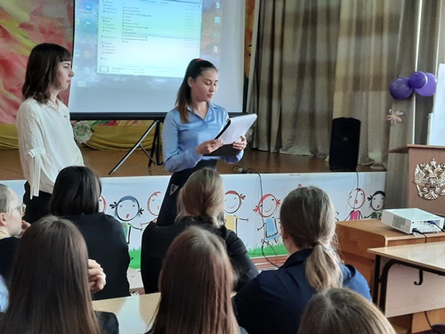 Студенты 3 курса педагогического колледжа Шинкаренко Анастасия и Саликова Анастасия рассказали присутствующим о том, почему и как они выбрали для себя такую профессию и поделились впечатлениями от обучения.